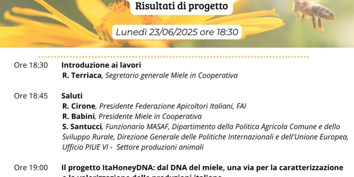 👨🏻🔬 Il Prof. Fontanesi dell’Università di Bologna spiegherà che oggi è possibile certificare il miele prodotto da api italiane.